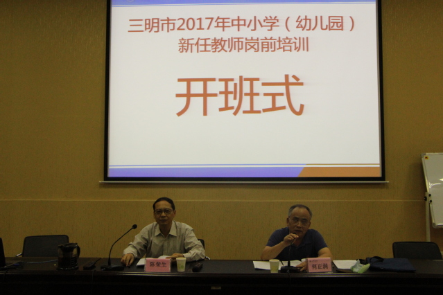 10月9日下午,由我院承办的中小学、幼儿园新任教师岗前培训班(第一期)开班式在我校三元校区博识楼109室举行,三明市教育局人事科何正润科长、继续教育学院陈荣生院长出席了开班仪式。