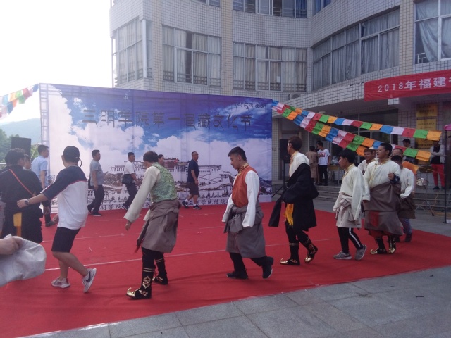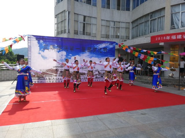 5月19日,三明学院学工部和继续教育学院在博学楼前共同举办三明学院第一届藏文化节。副校长吴龙,西藏昌都市中青年后备干部培训班全体学员参加本次活动。