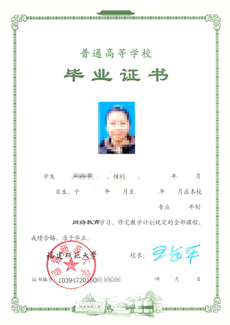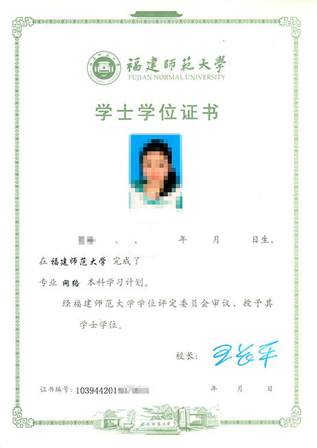 学生在规定的学习年限内,修完教学计划规定的全部学分(本科专业学生在读期间需通过教育部统一组织2门公共课程考试),成绩合格者,颁发福建师范大学毕业证书(加注“网络教育 ”),并报教育部电子注册,国家承认学历。符合学士学位授予条件的本科毕业生,按福建师范大学学位管理有关规定,由福建师范大学授予相应的成人高等教育学士学位证书。