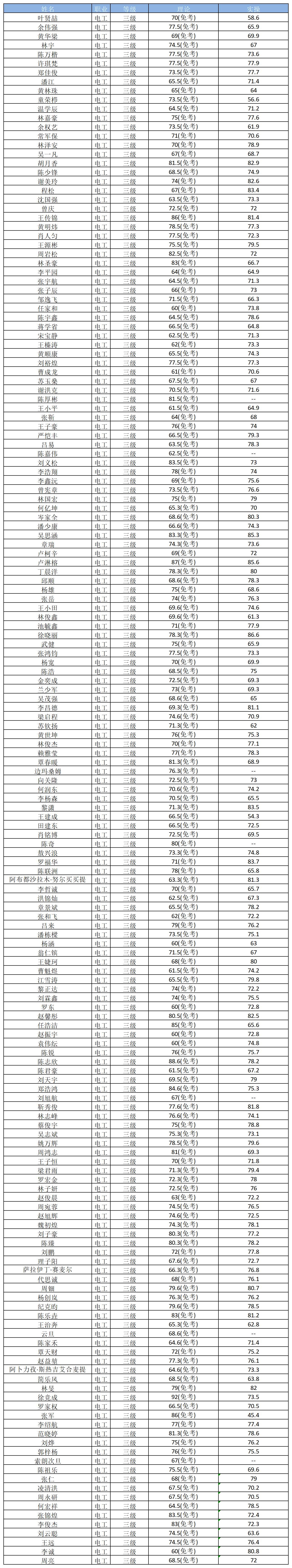 20251227-28批次职业技能等级认定成绩公告(电工)